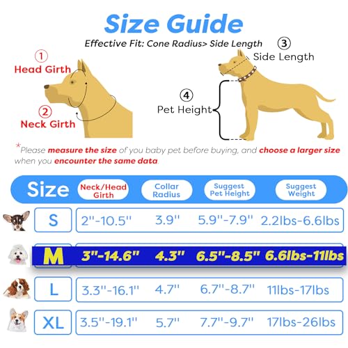 Live Freely & Comfortably: Filled with premium elastic cotton, the pet cones with adjustable neck girth are light and soft which will definitely bring comfort to our pets and let them move freely when they wear the cones.