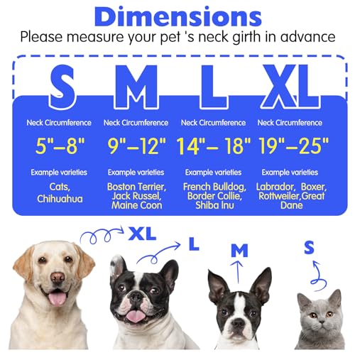 💌Tip: The recommended size is for reference only, because every pet is different. If you find that the dog spay recovery collar you choose is large enough to fall off easily, you can also secure it with your pet’s everyday collar through the inner ring of the cone of shame alternatives.