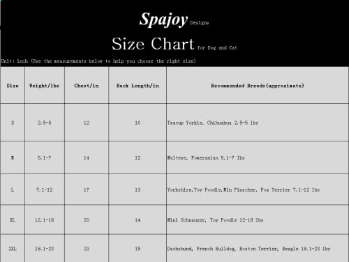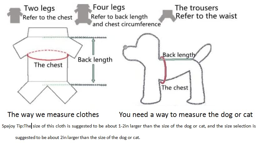 Spajoy Warm Tips: The dog and cat hoodie is suitable for puppy, please choose the appropriate size by measuring in chest and back length and referring to size chart before ordering, not weight or breeds merely; And choose the larger size if the measurements are between two sizes.
