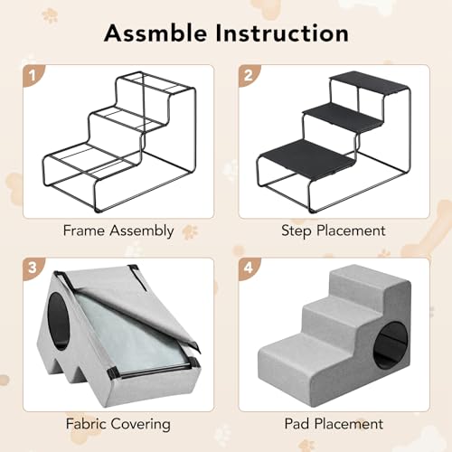 - Why Choose PetThem Dog Stairs: Say goodbye to the hassle of waiting for foam ramps to expand! Our three-step process: assembling the staircase frame, securing the steps, and draping it in durable Oxford fabric, providing you instant access to convenience. Your pet’s happiness and well-being are our top priorities. That’s why PetThem not only provides high-quality products but also stands behind them with 30-day free returns and 365-day quality guarantee service.