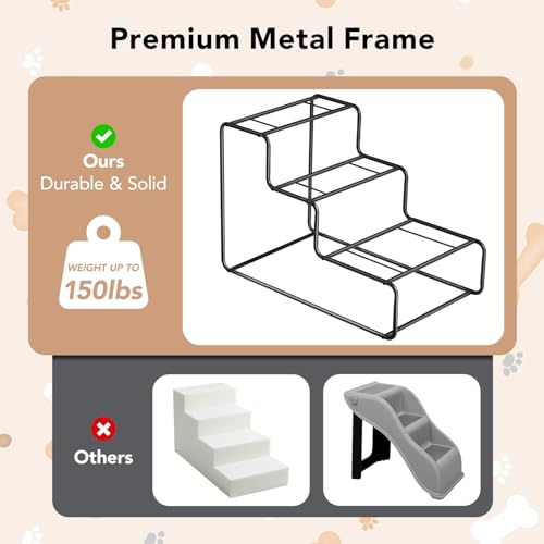 - Stable & Safe: Unlike most foam-based products, PetThem dog stairs feature sturdy premium metal frame supports up to 150 pounds, ensuring safety for even larger dogs. It is great for small medium dogs and large puppies and cats. Elevate your pet’s comfort and safety.
