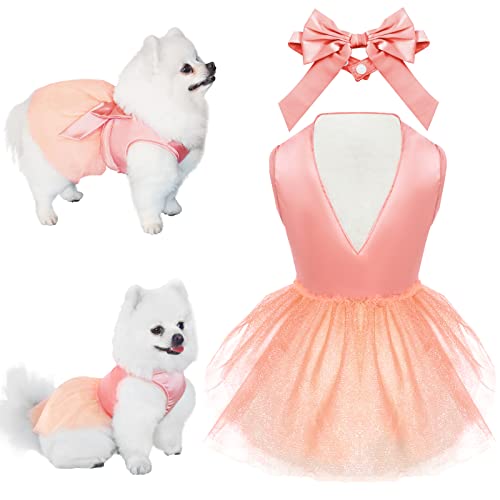 Summer Girl Dog Dress, Dog Silk Tulle Dress, Cute Princess Dog Dresses with Bow, Lace Pet Birthday Party Outfit Dog Tutu for Small Dogs, Fancy Puppy Clothes for Chihuahua Teacup Yorkie