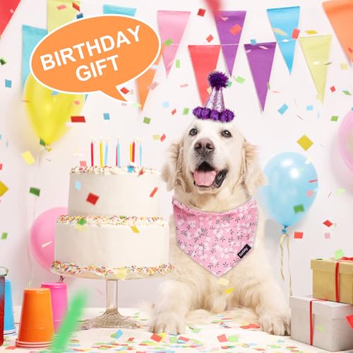 Cute Dog Bandanas: The spring summer colors floral bandanas make your pet look super cute, the colors are vibrant and wonderful for girls, 4PCS pink orange green bandanas can change the look of your pet every day of one week, Cute gift ideas.
