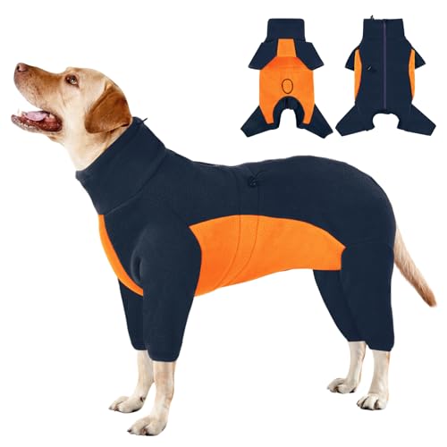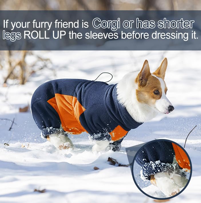 SUNFURA full body dog winter coat pet fleece pajamas, suitable for snowy cold weather days.