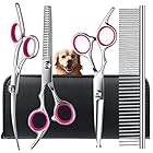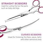 【PERFECT PET GROOMING KIT】: Dog grooming kit includes 6.5-inch thinning shears, 6.5-inch curved scissors, 6.5-inch straight scissors, grooming comb, cleaning cloth, and stylish black leather case. So it can trim any part of your pet such as body, face, nose, ear, tail, paw etc.
