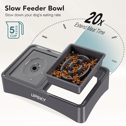 Slow Feeder Bowl: The unique slow food dog bowl has an oval pattern ridge, which can effectively slow down the eating speed, extend the pet’s eating time, prevent suffocation, bulimia, and indigestion, reduce the burden on the stomach, help the dog form a healthy eating habit. The UPSKY dog bowl adds a semicircular hole where the bowl is placed for easy access.