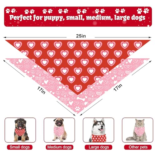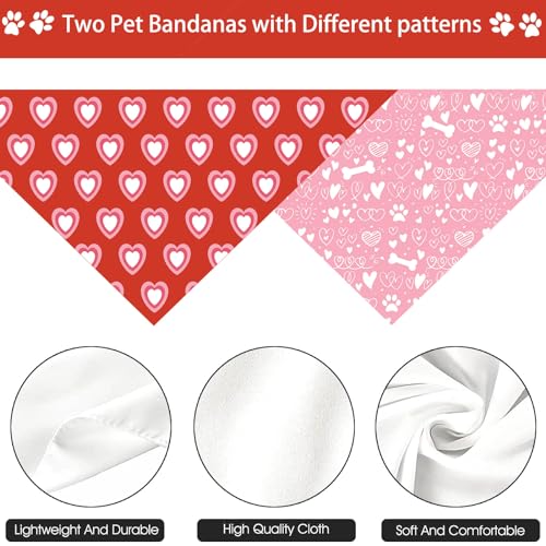 VALENTINE’S DAY PATTERN DESIGN: Two animal dog Valentine’s Day bandanas feature Classic Valentine’s Day colors – red and pink and heart pattern on both sides. Perfect pet accessories decoration to make your dogs and cats look more cute and attractive.
