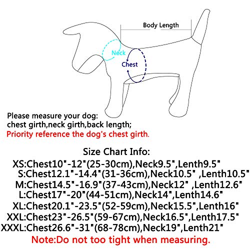 S:Chest12.1″-14.4″(31-36cm),Neck10.5″ (26cm),Length10.5″ (26cm),Note:you must measure your dog,reference size chart,Priority reference chest girth.