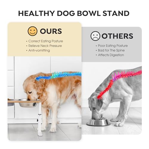 Elevate Your Dog’s Mealtime Bliss: Unlike traditional dog bowls, the elevated design allows your pet to eat at a more natural level, is designed to reduce neck strain and promote proper digestion, making it ideal for dogs with arthritis, neck issues, or other discomforts.