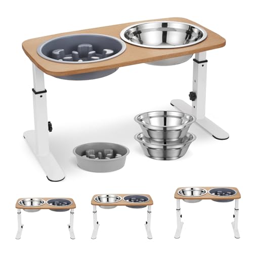 3 Adjustable Height Grows with Your Dog. Veehoo raised dog bowls can be adjusted to 3 different heights: 8.3″, 9.5″, and 11″, suitable for large, medium and small dogs. Elevate mealtime and provide your pet with the utmost comfort with Veehoo dog bowl stand!