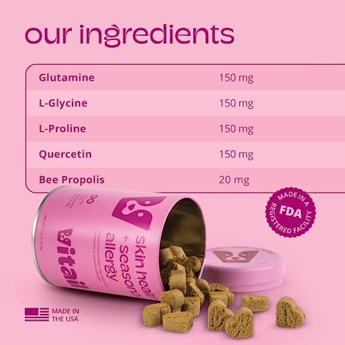 Vitail Seasonal Allergy Supplement for Dogs – Dog Chews for Skin Health & Seasonal Allergy Relief – Probiotic with Amino Acids, That Support Collagen Production, Quercetin, and Glutamine