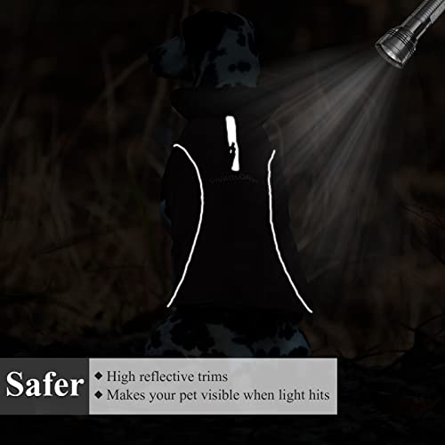 【SAFER】With build-in reflective trims, when vehicle headlights hit, this VIVAGLORY dog cold weather coat makes your dog visible in low-light conditions. Provides visibility to keep your puppy away from any possible accidents during walking, hiking and hunting. Two-way smooth zippers with self-locks allow you to attach the collar or harness easily, it also has flap under the zipper to avoid hurting your pup’s hair