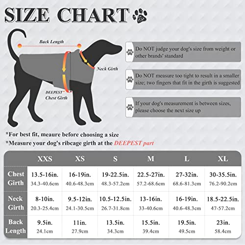 【MEASURE BEFORE PURCHASE】Before choosing a size, please measure your dog’s ribcage at the DEEPEST part; do NOT judge them from weight or other brands’ standard; get a dog vest with APPROPRIATE SIZE to make your furry baby comfortable. Contact VIVAGLORY for assistance if any concerns arise