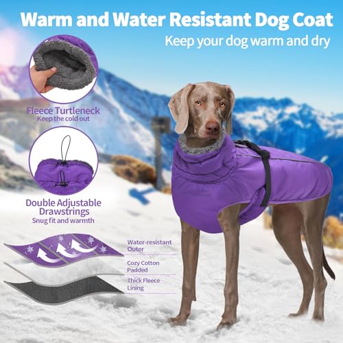 Widely Fit: The coat is designed for small to large dog breeds, especially beneficial for short-haired dogs and dogs without undercoats in cold winter. The fleece dog jacket offers efficient protection against cold, wind, snow, and wet, perfect for outdoor activities such as walking, hiking, running, camping, and climbing. Before ordering the coats for dogs, Please measure the dog with the Measurement Guide, and use the size chart for the perfect fit. If between sizes, please size up.