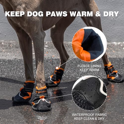 WATERPROOF & KEEP WARM – The dog boots come with high-quality waterproof fabric and warm fleece lining to keep your dog’s paws dry,warm, and clean in cold weather. The dog snow boots are great for working in rain, mud, and snow.