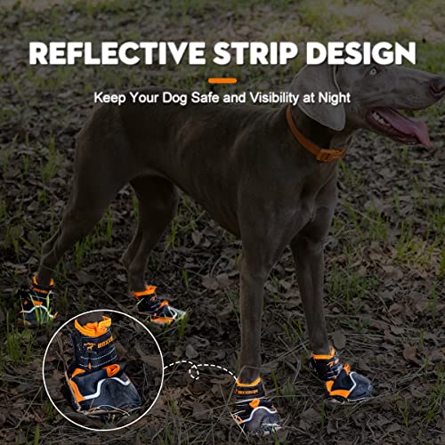 SAFETY & ADJUSTABLE DESIGN – The dog shoes has a wide opening design for easy to put on / take off.Dual velcro straps are easy to adjust loose tightness,prevent shoes from falling off.Dog boots have extra reflective strips to ensure the safety of the dog’s night walking.