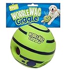 WOBBLE WAG GIGGLE Ball With just the nudge of a nose, off the ball goes! The ball does not require batteries- the secret is the internal tube noisemaker inside of the ball, the enticing “play-with-me” giggle sounds engage your pup as the toy rolls around!