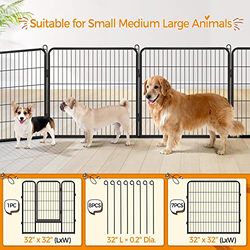 【Safe & Secure】3.8cm/ 1.5’’ bar spacing can keep your pets safe in the exercise pen. The latch on the door locks automatically as you close. Rounded edges protect animals, which also prevents causing damage to wood/PVC floors. Stakes not only connect the panels firmly but also anchor the panels to the grassland or soft ground.