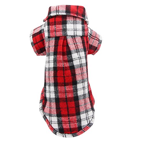 EASY TO PUT ON AND TAKE OFF: The pet tee easy to wear and clean, easy on and off with snaps buttons, needn’t worry about the shirt will fall out of the shoulder. exquisite shirt’s collar, classic plaid grid kind of shirt pattern makes your pet more fashionable, attractive and adorable.
