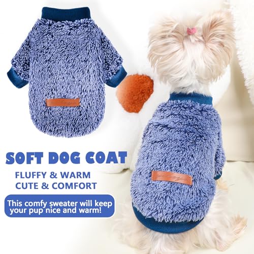 【 Pullover Dog Winter Clothes】Dog cold weather pullover with unique colorful navy blue, the Extra small dog sweater with round neck, long sleeve design. This dog fleece sweater great wear at home with this funny cute dog clothes.dog sweatshirts for small dogs will keep your pets warm and comfortable all day and night.