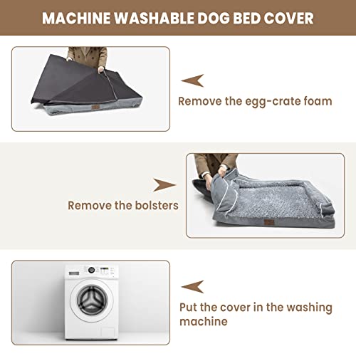 🐾【WASHABLE & REMOVABLE COVER】Washable dog bed covers unzip for easy removal and washing—perfect for those pets who always seem to find dirt piles and mud puddles! The covers can be hand or machine washed in cold water with a gentle detergent, then line dried or tumble dried on a low setting. The easy-care design makes cleaning convenient and hassle-free.