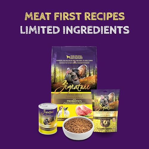 Try Zignature Turkey Formula Small Bites Dry Dog Food for pint-sized pups! This limited-ingredient kibble features smaller bites that are paw-fect for little mouths. But don’t let the small size fool you—each bite is packed with tantalizing turkey. This high-quality meat offers a rich source of riboflavin and selenium. Plus, Small Bites is fortified with probiotics to aid in healthy digestion. Treat your pup to a nutritious, drool-worthy bowl of Zignature Dog Food!