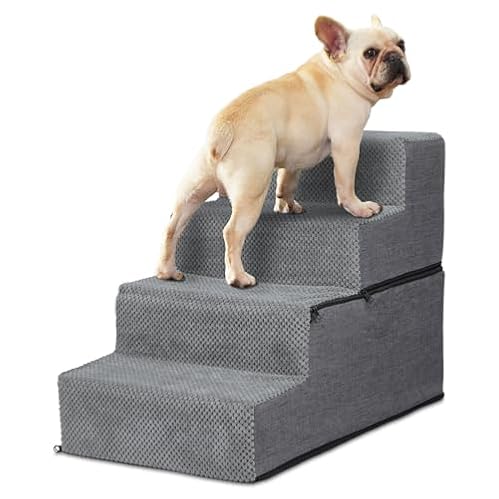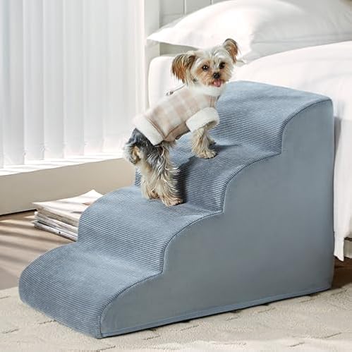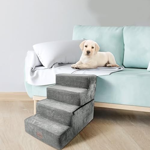 $39.99Dog Stairs for Small Dogs, 4-Steps Dog Ramp for Bed, Pet Stairs with Highly Supportive Foam and Non-Slip Bottom, Dog Stairs for Large Dogs and Medium Dogs, Grey