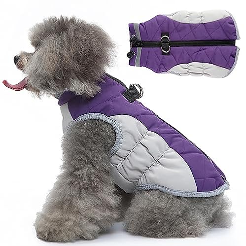 $25.99Dog Winter Coat Warm Cold Weather Dog Jacket with Zipper Dog Puffer Jacket Snow Jacket with Harness Built in Reflective Fleece Dog Sweater Vest Dog Coats for Small Medium Large Dogs Winter Waterproof