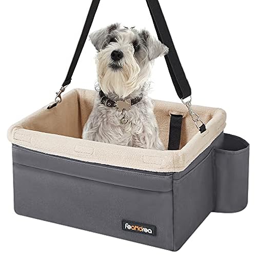 Feandrea Dog Car Seat, Pet Booster Seat for Small Dogs up to 18 lb, with Adjustable Straps, Removable Washable Fleece Liner, 4 Pockets, for Front Seats, Back Seats, Gray and Beige UPBS042G01
