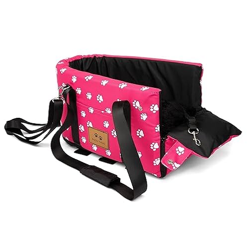 $7.99FUZZY PAWZ Pink Dog Car Seat Booster, Portable, for Armrest, Center Console, or Seat, Secured with Straps