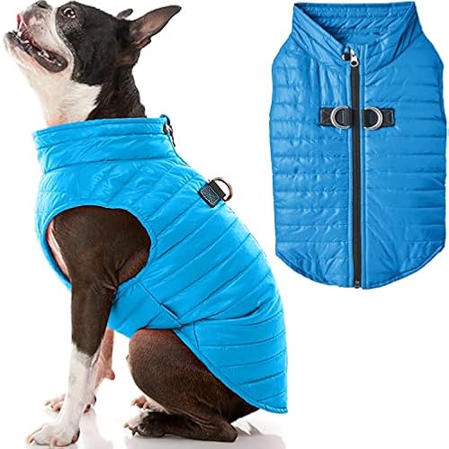 Gooby Puffer Vest Dog Jacket – Blue, Large – Ultra Thin Zip Up Wind Breaker with Dual D Ring Leash – Water Resistant Small Dog Sweater Coat – Dog Clothes for Small Dogs Boy or Medium Dogs