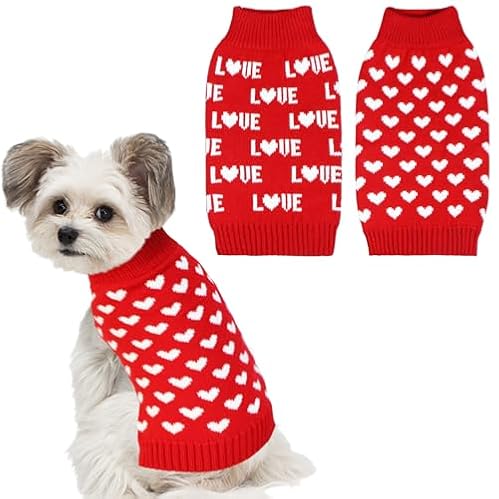 $33.99GOYOSWA 2 Pack Valentine’s Day Dog Sweater, Dog Valentines Day Clothes Dog Valentines Outfit Knitted Dog Sweaters for Small Medium Large Dogs Pets (Red Heart & Red Love, M)