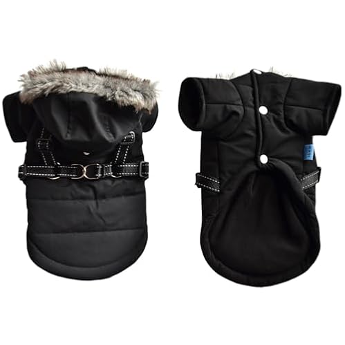 $18.99Gyuzh Winter Dog Hoodie with Harness Warm Dog Clothes for Small Dogs Coat Clothing Puppy Cat Custume Waterproof Warm Dog Jacket S Black