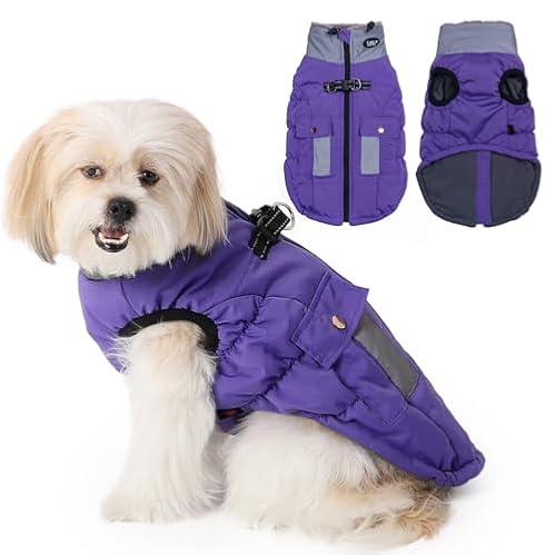 $26.99Gyuzh Dog Harness Coat Winter Dog Coat Jacket Vest Clothes Color Changing Dog Coat Dog Jackets Waterproof Dog Coats with Reflective Harness for Small Medium Large Dogs (Small, Purple)