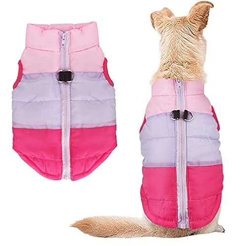 $39.99Idepet Pet Dog Cat Coat with Leash Anchor Color Patchwork Padded Puppy Vest Jacket Teddy Chihuahua Costumes Pug Cloth XS S M L (Small, Rose Red)