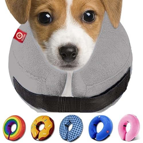 $11.89Inflatable Dog Cone Collar – Soft, Comfortable & Adjustable for Small Medium Large Dogs & Cats, Anti-Lick Recovery Donut E-Collar for After Surgery (Grey, M)