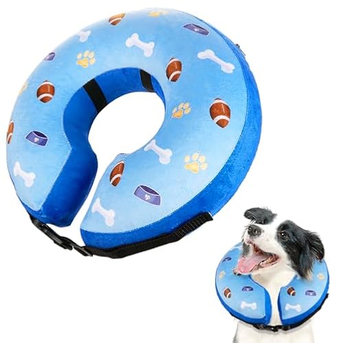 Inflatable Dog Cone Collar Alternative After Surgery, Pet Neck Donut Collar Soft Protective Recovery Cone for Dogs and Cats, E Collar not Block Vision (L-Neck: 12”-18”, Football and Blue)