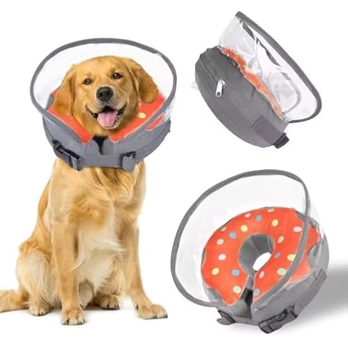 $14.99Inflatable Dog Cones for Large Dogs Donut Collar Alternative After Surgery Neck Donut Stop Licking Surgical Recovery Comfy Comfortable Soft Pet Pillow Cones Mediem Elizabethan Collars – L