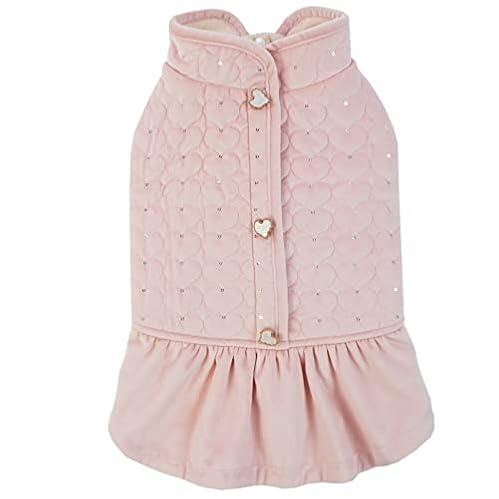 Kuoser Dog Coat Puppy Winter Clothes, Soft Fleece Lining Girl Dogs Vest Dress, Windproof Thermal Outfit Pet Cold Weather Jacket Doggie Apparel, Pink XS – XL