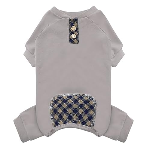 $20.89KYEESE Dog Coats Stretchy Dog Sweater Dog Pajamas Soft Material Dog Pjs Dog Onesie Plaid Puppy Pajamas Dog Jumpsuit Dog Clothes for Small Dogs, Grey, S