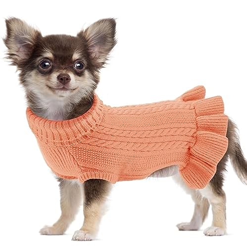 $32.99ALAGIRLS Classic Knitwear Thick Fleece Dog Sweater, Turtleneck Cable Knit Pet Sweater for Large Dogs, Cute Halloween Christmas Holiday Themed Pet Apparel, LightOrange XL