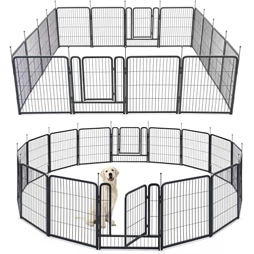 $99.99TMEE Dog Playpens 8/16 Panels Dog Pen Outdoor Dog Fence Exercise Pen 40 inch Height Pet Play Yard Gate with Doors for Large/Medium/Small Dogs, Pet Playpen for RV, Camping, Yard, 16 Pcs