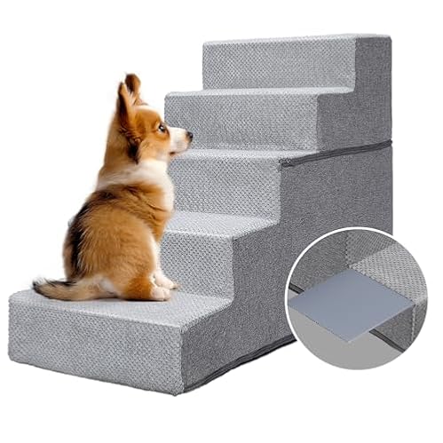 Topmart Dog Stairs for Small Dogs,5-Step,22.5″ H, Pet Stairs for High Beds and Couch, Folding Dog Ramps Steps for Small Dogs Cats with Removable Washable Cover