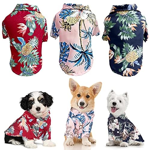 - Whaline 3 Pieces Hawaiian Dog Shirts Breathable Summer Dog Cloth Pineapple Flamingo Pattern Pet Apparel Beach Short Sleeve Suit for Small to Large Dogs (Blue, Yellow, Rose Red), 2XL$14.99