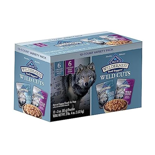 $39.00Blue Buffalo Wilderness Trail Toppers Wild Cuts High Protein, Natural Wet Dog Food Variety Pack, Chicken and Beef Bites, 3-oz Pouch, 12 Count