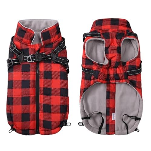 $29.99Brabtod Dog Winter Coat Dog Harness Jacket Plaid Pet Fleece Vest Warm Puppy Coats Small Dog Clothes Reflective Waterproof Dog Outdoor Coat with Harness Built in for Cold Weather-Red-S