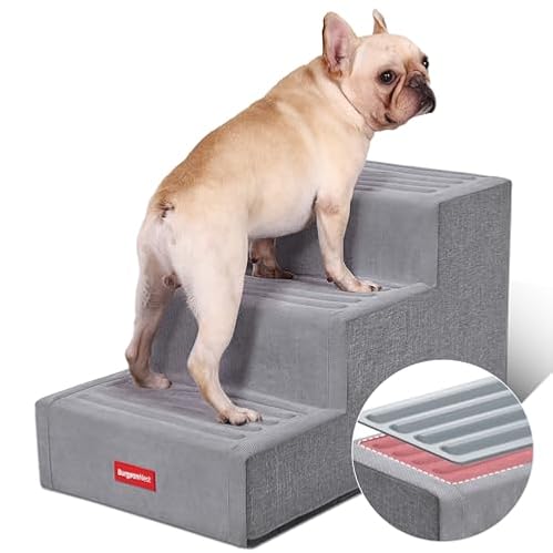 $39.99BurgeonNest Extra Wide Dog Stairs for Small/Medium Dogs Climbing High Bed and Couch, Folding Pet Stairs with Removable Washable Cover & Anti-Slip Bottom (3 Steps – Height: 15‘’)
