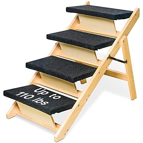 $7.992-in-1 Dog Stairs/Dog Ramp with 4 Steps, Foldable Dog Stairs for High Beds Cars Couch, Durable Wooden Pet Stairs for Small Medium Large Dogs, No Assembly Required