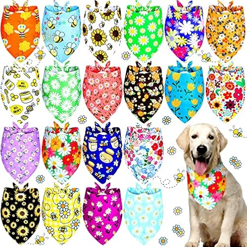 $13.9820 Pieces Summer Spring Dog Bandanas Bulk, Hawaii Floral Dog Bandana Soft Triangle Doggy Kerchief Scarf Bibs with Flowers Patterns for Small Medium Large Pets (Flowers, Bees, X-Large)