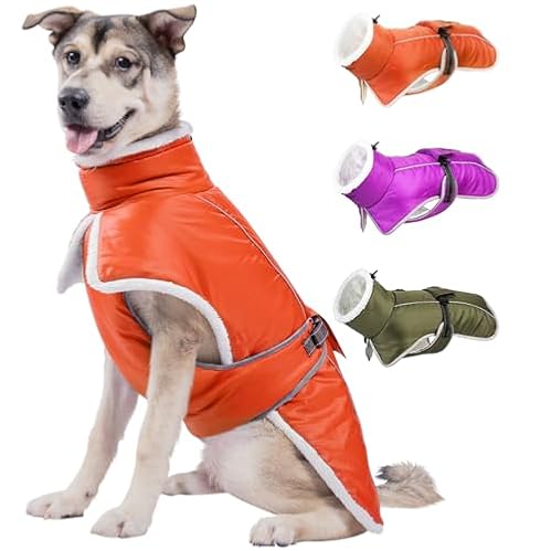 $23.99Comwish Dog Winter Coat for Large Dogs, Waterproof & Reflective Dog Snow Jacket with Fleece Lining Adjustable Turtleneck Dog Cold Weather Coats with Harness Hole(Orange, XL)